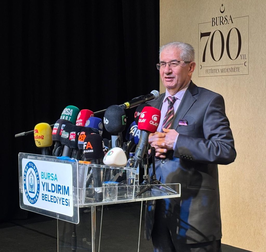 “Bu aziz şehrin kalbinde yer alan Yıldırım ise bu medeniyet tasavvurunun en önemli merkezlerinden biridir. Yıldırım Bayezid Han’ın adıyla anılan bu güzel topraklar; külliyeleriyle, darüşşifasıyla, ilim yuvalarıyla önemli bir medeniyet merkezidir. Ecdadımız Bursa’yı fethederken sadece surları aşmadı, gönülleri de kazandı. Çünkü onlar için fetih sadece toprak almak değil, ihya etmekti; hükmetmek değil, adaletle yaşatmaktı. Bugün bize düşen görev ise bu büyük mirası yalnızca anmak değil; anlamak, yaşatmak ve yarınlara taşımaktır. Çünkü biliyoruz ki mazisiyle bağı zayıf olanın istikbali de zayıf olur. Köklerinden kopan bir şehir, ruhunu da kaybeder. İşte bu şuurla, Yıldırım Belediyesi olarak Bursa’nın fethinin 700. yılında ‘Beylikten Cihan Devletine’ şiarıyla düzenlediğimiz bu sempozyum, gayretimizin ilmi zemini niteliğindedir” şeklinde konuştu.